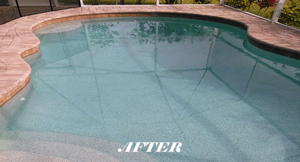 In more extreme cases, it may be necessary for our technicians to drain the pool, remove leftover debris and algae, and then pressure wash and/or acid wash the entire pool as needed.